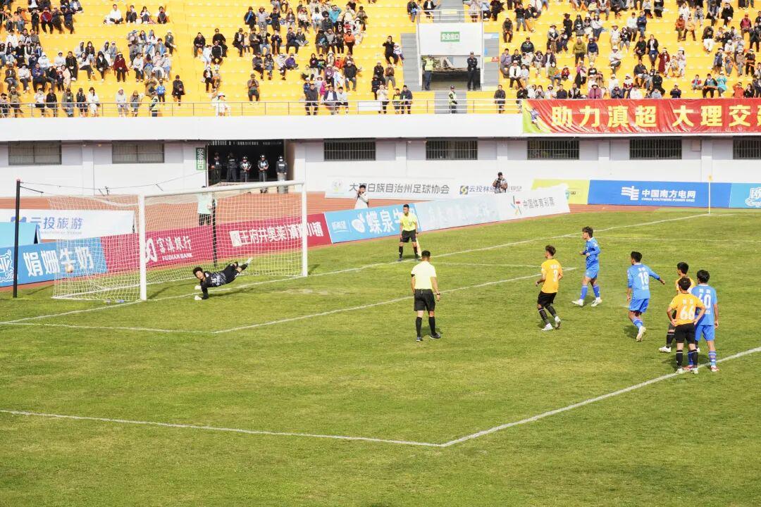 比赛第85分钟,大理队在禁区内获得点球机会,15号队员艾尼凯尔・赛麦提主罚稳稳命中,帮助球队锁定胜局。最终,大理主场2-0击败保山,在主场全取3分的同时斩获赛季首胜,收获了主场球迷的欢呼与呐喊。
