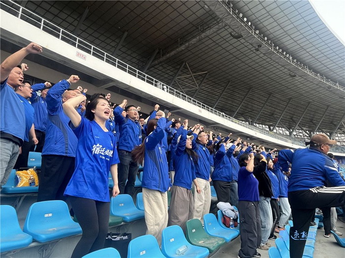 合练现场气氛热烈、秩序井然,球迷们全身心投入赛前助威排练。“告诉他们我们是谁!宿迁精神永不后退!”铿锵有力的助威声响彻场地,大家逐句排练战歌,反复打磨口号节奏、调整助威队形,每一个手势、每一次呐喊都饱含深情,诠释着宿迁球迷的强大凝聚力。
