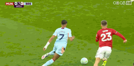 第6分钟,卢克-肖放倒沙德,被黄牌警告