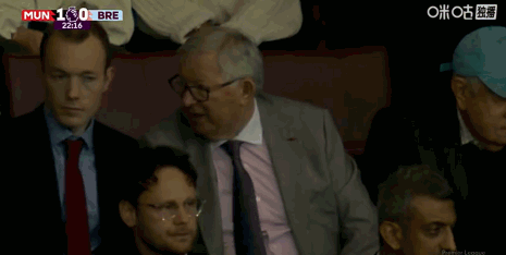 第23分钟,镜头给到场边,弗格森看台观战